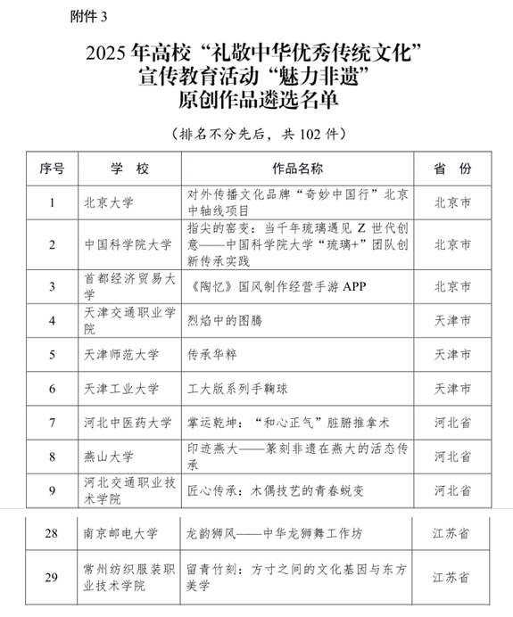 我校在教育部2025年高校“礼敬中华优秀传统文化”宣传教育活动中喜获佳绩